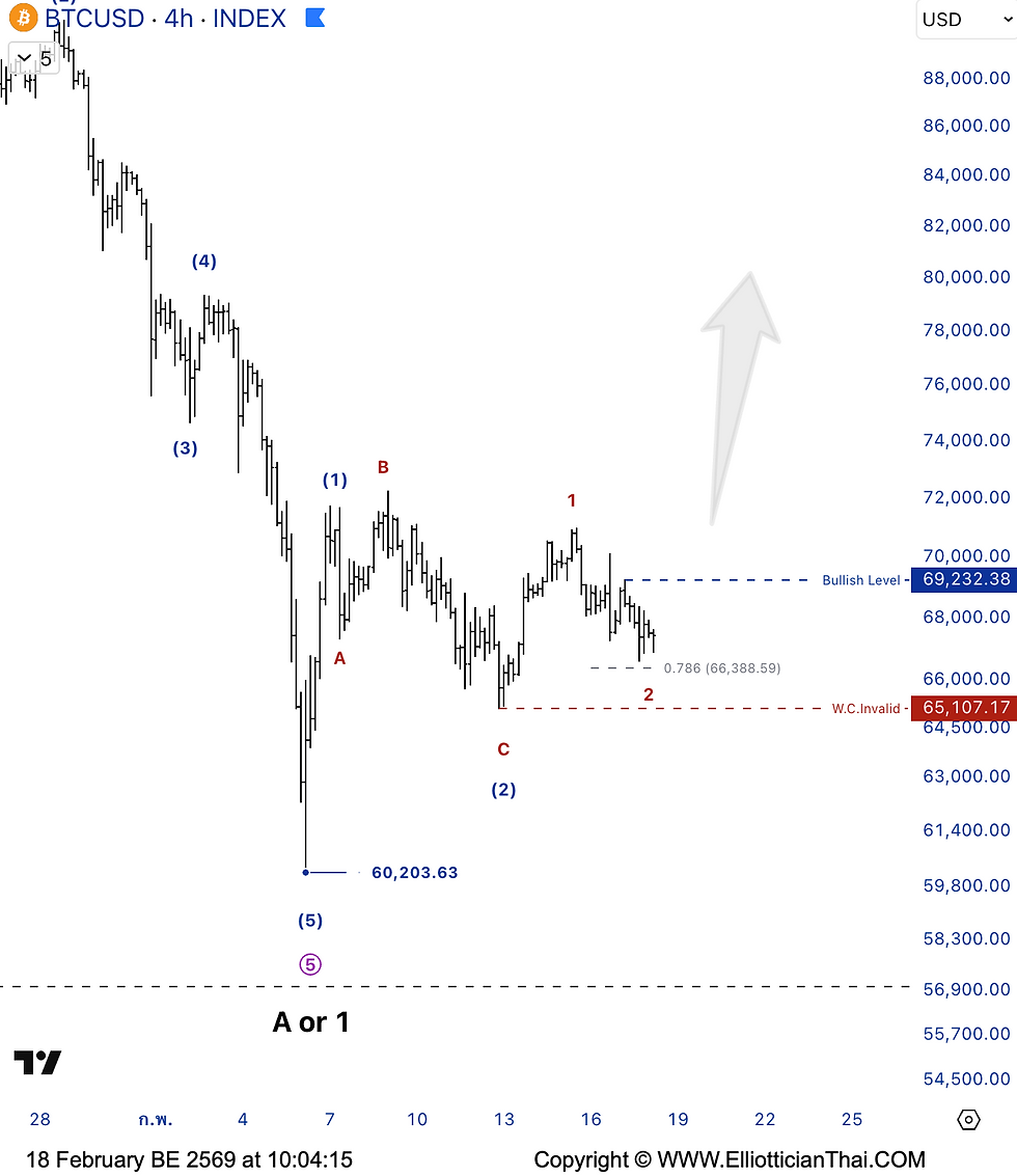 📉 BTCUSD – A หรือ 1 จบแล้ว? คลื่น (2) กำลังทดสอบโครงสร้าง