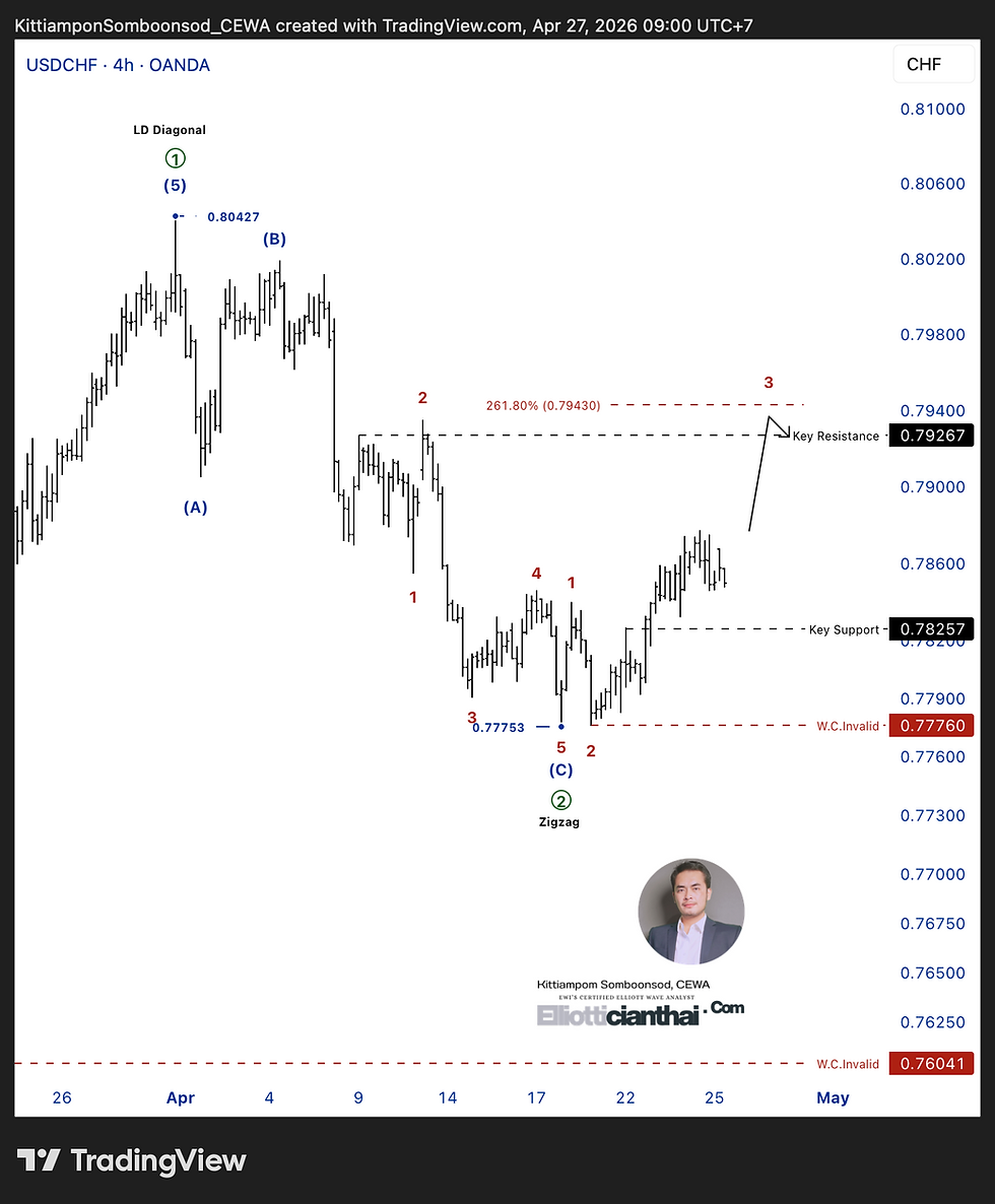 📈 USDCHF – คลื่น (2) สิ้นสุดแล้ว เตรียมเข้าสู่คลื่น (3) ขาขึ้น